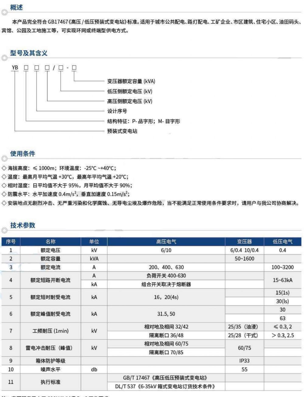 YB-12高壓/低壓預裝式變電站