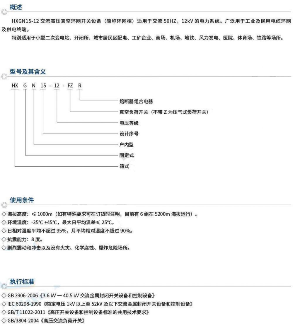 HXGN15-12交流高壓真空環(huán)網(wǎng)開關(guān)設(shè)備