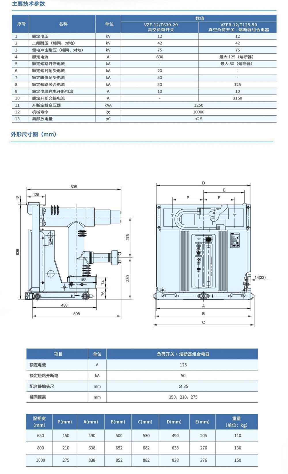 VZFR-12/T630-20/T125-50手車式真空負荷開關+熔斷器組合電器